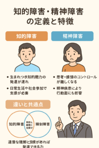 知的障害・精神障害とは、認知機能や感情面に制限があり、日常生活に支援を必要とする状態を指します。