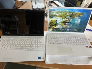 予算的にも修理よりパソコン買い換え希望との事で、新しく購入頂いたパソコンを初期設定し、起動しなくなったパソコンからのデータ復旧、メールアカウント設定し納品しました♪